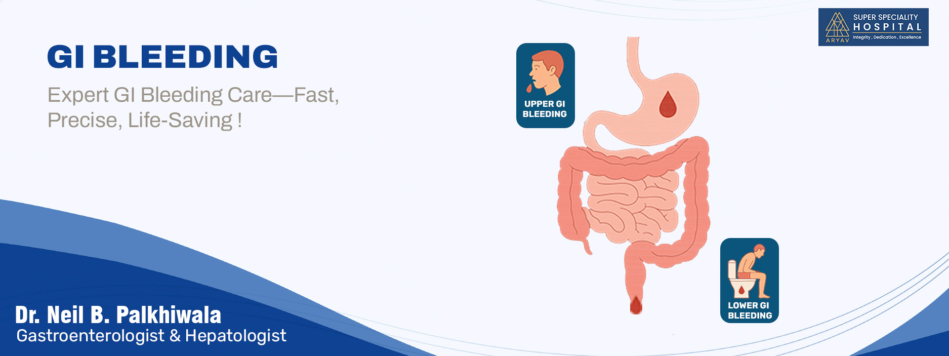 Schedule your GI Bleeding care with Dr. Neil Palkhiwala- Director and Head Aryav Multispeciality Hospital, Ahmedabad . Call us to book your appointment or ask any questions to +91 91069 95254